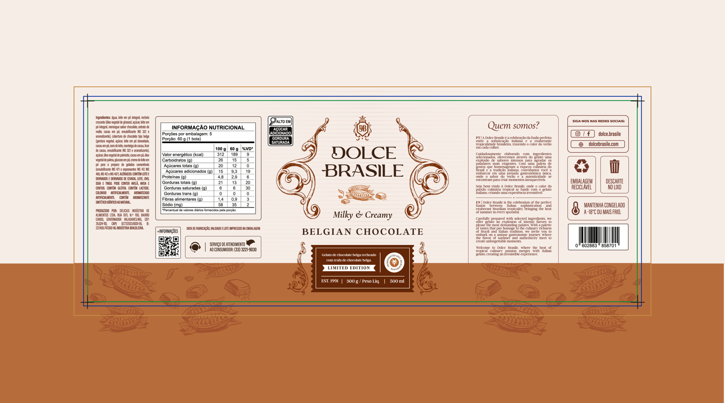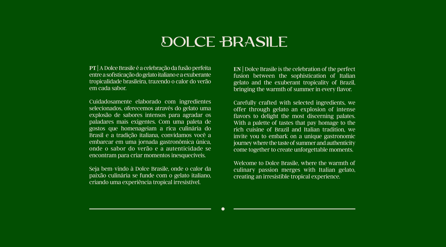 Nascida do desafio de criar uma marca de gelato italiano com alma brasileira, a Dolce Brasile foi concebida para expressar refinamento e calor em perfeita harmonia. A marca conta a história do encontro entre dois mundos, a precisão e a sofisticação da tradição italiana e a riqueza sensorial e emocional do Brasil. Esse encontro guiou cada escolha, desde a criação do símbolo até a composição dos rótulos e o tom da narrativa visual. A identidade explora o equilíbrio por meio de formas atemporais, tipografia elegante e um ritmo visual que valoriza a simplicidade e a autenticidade. Cada elemento foi cuidadosamente desenvolvido para evocar as texturas, sensações e emoções de saborear um verdadeiro gelato artesanal. O design não busca decorar, mas traduzir a essência da Dolce Brasile, uma marca que celebra o prazer como um ato de cultura e conexão. Posicionada no território do luxo sensorial, a Dolce Brasile não depende do excesso nem da ostentação. Sua sofisticação vem da percepção, da forma como cores, formas e materiais comunicam calma, elegância e profundidade. Cada detalhe foi construído para transmitir autenticidade, proximidade e sofisticação de maneira natural. Mais do que uma marca, a Dolce Brasile é uma experiência em que o design se torna linguagem e o sabor se torna emoção, um diálogo entre gosto, cultura e beleza.Descrição do post.